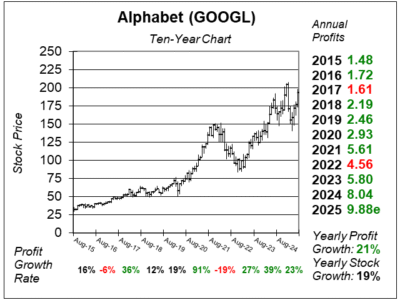 Alphabet is a conservative growth stock with a good growth rate. Prior to 2022, the company had profits up every year since its IPO outside of 2017 (which was only down as it switched its accounting practices to a more conservative stance). The stock has an Est. LTG of 17% a year, and a P/E of 20. I think the P/E should be 25. That implies a 28% upside by the end of 2025. Management recently issued its first quarterly dividend, of $0.20 per share. Management also buys back stock. In 2024, management has returned almost $70 billion to shareholders via stock buybacks and dividends. GOOGL is part of my Growth Portfolio, Conservative Growth Portfolio, and Aggressive Growth Portfolio. |