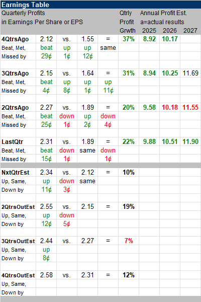 Annual Profit Estimates jumped this qtr. To keep up with growing demand for AI and cloud services, Alphabet increased its full-year capital spending plan (CapEx) to $85 billion, up from $75 billion. The company expects to spend even more in 2026 to have more servers and data centers. Qtrly Profit Estimates for the next 4 qtrs are 10%, 19%, 7%, and 12%. Analysts think revenue will grow 13% next quarter. Higher Cap Ex will increase depreciation costs next quarter, which will also include hiring more staff and expenses for the new Pixel launch in August. |