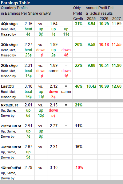 Qtrly Profit Estimates for the next 4 qtrs are 21%, 11%, 16%, and -10%. Analysts think revenue will grow 15% next quarter. Depreciation costs will accelerate slightly this quarter. Sales and Marketing expenses will be higher towards the end of the year to support product launches and the holiday season.