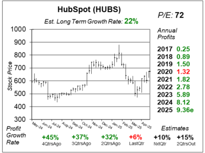 Annual Profit Estimates increased for 2025 and 2026 but decreased for 2027. Qtrly Profit Estimates are for 18%, 28%, 30%, and 22% profit growth in the next 4 qtrs. Analysts think HUBS revenue will grow 17% next quarter. |