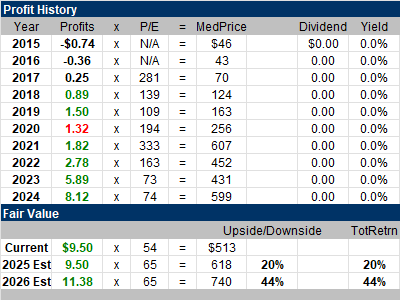![]() My Fair Value 65x profit estimates, giving us a Fair Value of $618 for 2025. That gives HUBS 20% upside (in my opinion). But, I might reduce my Fair Value P/E ratio next quarter. Software stocks just ain’t what they used to be (unless you’re Palantir). |