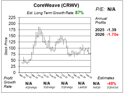 To support this backlog growth, CoreWeave spent $8.2 billion in capital expenditures (CapEx) last quarter, bringing total 2025 spending to $14.9 billion and expects ~$35 billion of CapEx for full year 2026 as it rapidly builds new AI data centers and deploy GPUs. These investments pressure profitability, with operating margin falling to 6% last quarter, down from 16% a year ago.