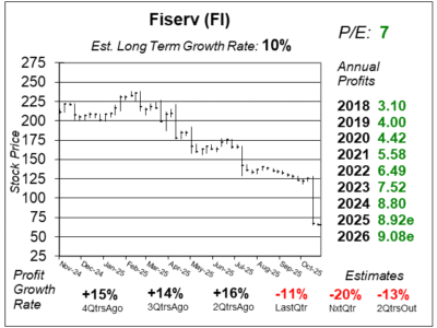 FI is part of the Conservative Growth Portfolio, Growth Portfolio, Aggressive Growth Portfolio. It’s a safe stock with a high-teens growth rate and a low P/E.