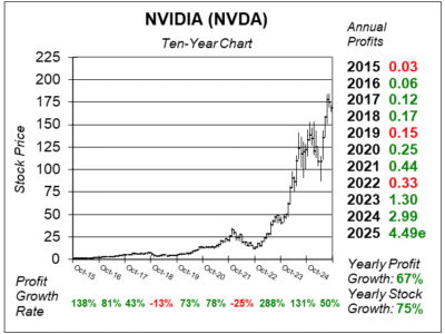 ![]() Meanwhile, the 2022 slump was due to a downturn in sales in the Gaming division as (1) businesses were flush with cash in 2021 and had already upgraded computers and (2) Bitcoin miners found it unprofitable to mine with lower crypto prices combined with high electricity costs. In January 2023 the stock pushed past $20 and ended that year at $50 as Datacenter sales pushed higher due to AI investments. 2024 was also great as the shares went from $50 to 134. NVIDIA is still the top stock in my universe. It’s a large company that’s at the center of AI buildouts. And buildouts have been strong lately. Looking ahead, NVIDIA sees the next big opportunity in Robots. NVDA ranks first in the Growth Portfolio and Aggressive Growth Portfolio Power Rankings. |