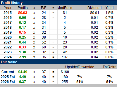 ![]() My Fair Value for this stock is $180, giving the stock 7% upside from the recent quote of $168. There’s ample upside for 2026 — 51% — as my guess is the stock could be $255 by then. |