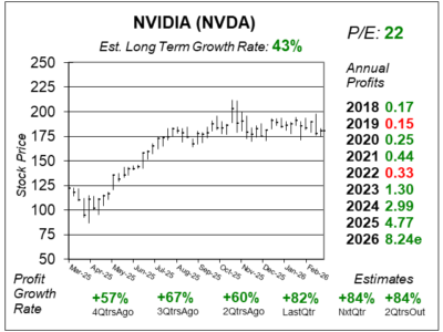 NVIDIA stock has been basing around $175 – $200. The NASDAQ is currently under pressure, but with NVDA’s superior profit growth, I expect this stock to be one of the first leaders of the next market upswing.