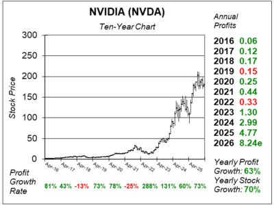 Meanwhile, the 2022 slump was due to a downturn in sales in the Gaming division as (1) businesses were flush with cash in 2021 and had already upgraded computers and (2) Bitcoin miners found it unprofitable to mine with lower crypto prices combined with high electricity costs. In January 2023 the stock pushed past $20 and ended that year at $50 as Datacenter sales pushed higher due to AI investments. 2024 was also great as the shares went from $50 to 134. NVIDIA is still the top stock in my universe. Another sensational quarter. NVDA ranks first in the Growth Portfolio and Aggressive Growth Portfolio Power Rankings. |