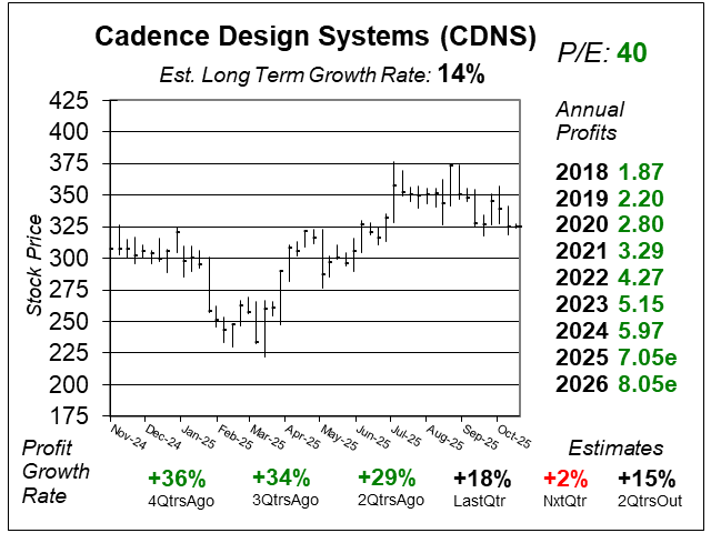 Cadence Design Systems (CDNS) has software and hardware that companies use for designing their own electronic parts.