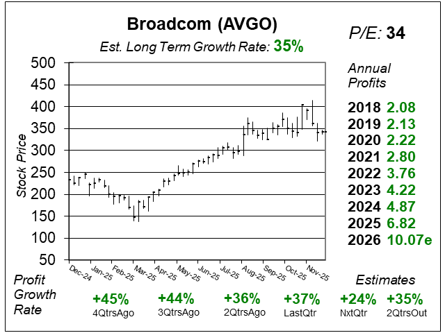 Last quarter, Broadcom’s (AVGO) saw a massive rise in 74% AI semiconductor revenue growth, helping to boost profits 37%.