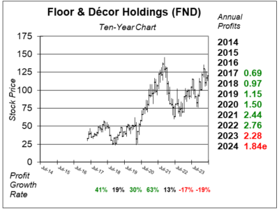 Here is the ten-year chart of Floor & Decor Holdings (FND) as of June 5, 2024, when the stock was at $120.