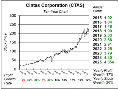 Here is the ten-year chart of Cintas Corporation (CTAS) as of July 25, 2025, when the stock was at $224.